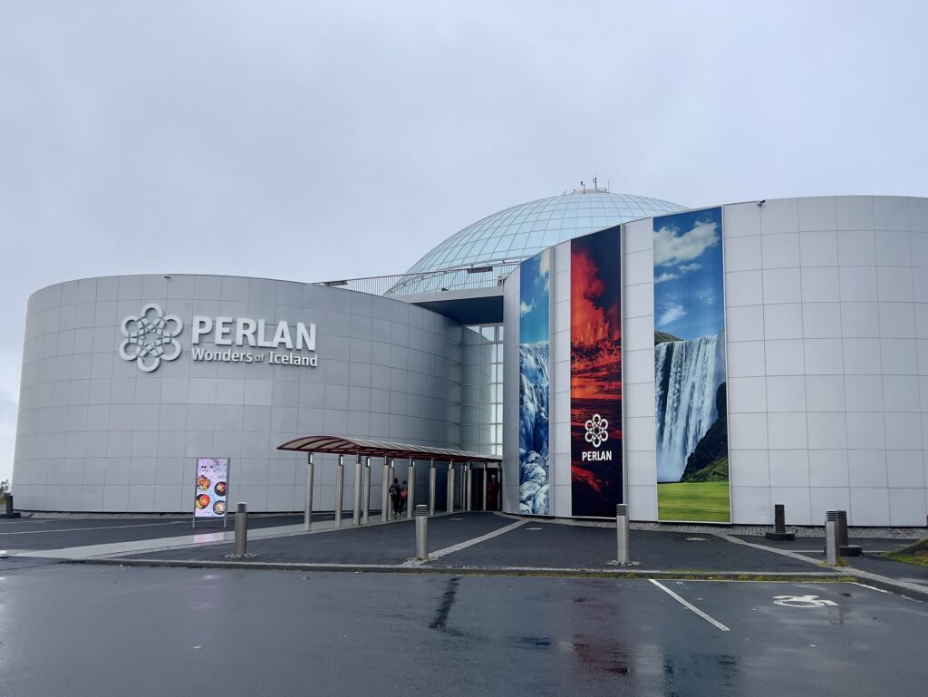 Auf dem Weg Richtung Reykjavik haben wir uns kurzfristig entschieden, mit einem Besuch des Perlan Naturkunde-Museums dem Regen zu entgehen. Nach einem kurzen aber beeindruckenden Film über einen Vulkanausbruch 2021 konnten wir auch schon die Vorführung einer simulierten Fahrt in einen Vulkan miterleben, die eigentlich erst in ein paar Tagen offiziell eröffnet wird. Mit dem anschliessenden Gang durch einen minus 15 Grad kalten Eiskanal haben wir damit gleich zum Start Island’s Motto von „Feuer und Eis“ erleben können. Der Rest des Museums ist recht überschaubar, aber im Planetarium konnten wir einen Vorgeschmack auf die hoffentlich zu erwartenden Nordlichter bekommen und in der Kuppel gab es neben einem späten Frühstück im Café einen ersten Blick auf Reykjavik, wo wir allerdings erst zum Schluss einen Stop einplanen.