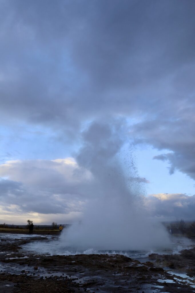 Ein paar Kilometer weiter ist mit dem Strokkur ein Geysir aktiv, der alle 5-6 Minuten ausbricht so dass wir nicht lange auf Fotogelegenheiten warten mussten.