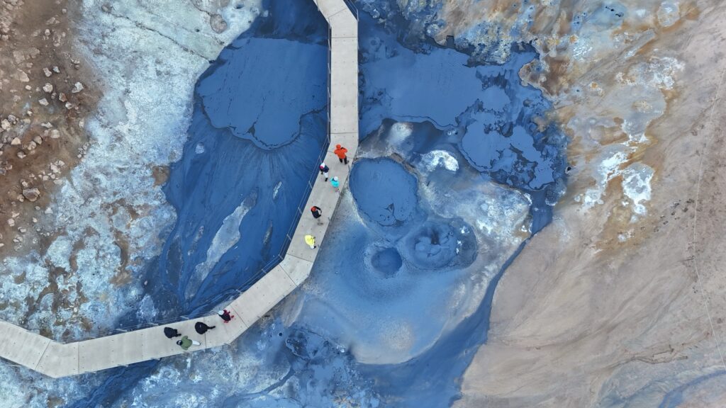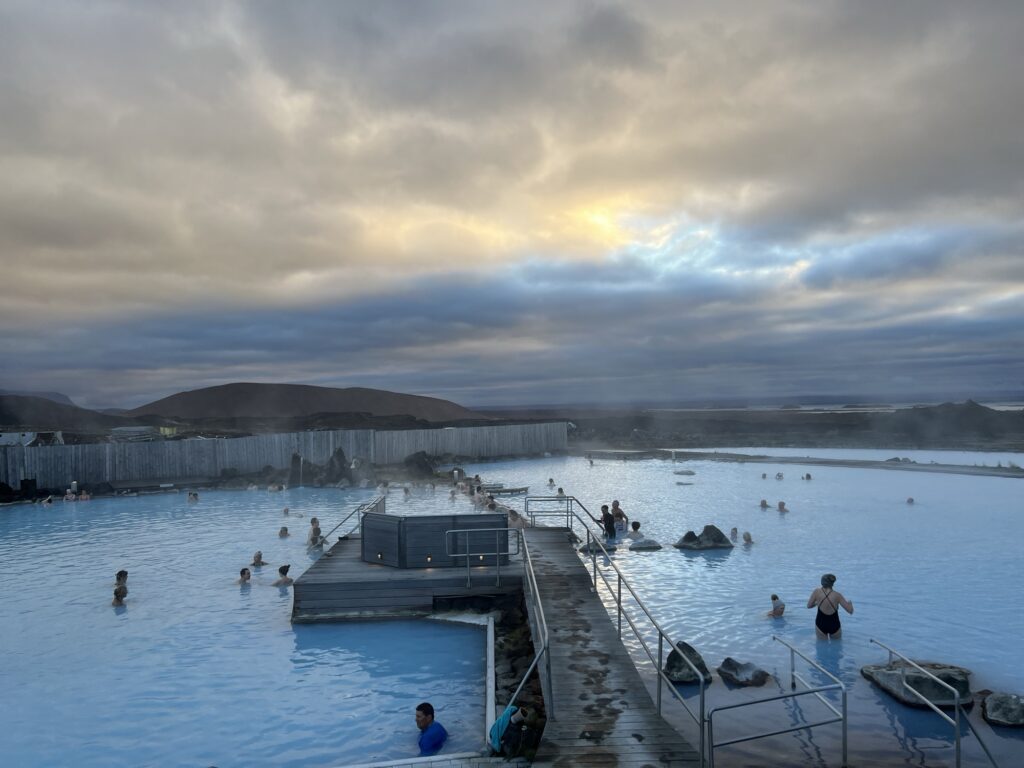 Zum Abschluss des Tages gönnten wir uns dann ein heisses Bad im „Jarðböðin“, einem lagunenähnlichen Freibad mit milchig blauem, mineralhaltigem Wasser aus natürlichen heißen Quellen. Sicherlich auch nicht billig aber eine gute Alternative zur berühmten und eben auch sehr teuren „Blauen Lagune“ in der Nähe von Reykjavik.