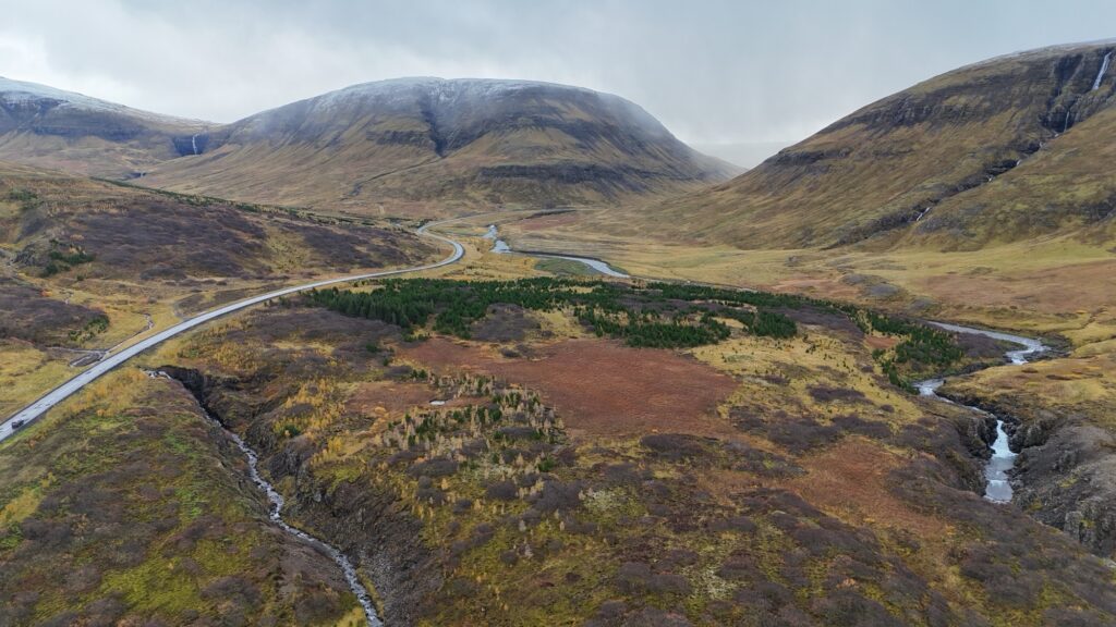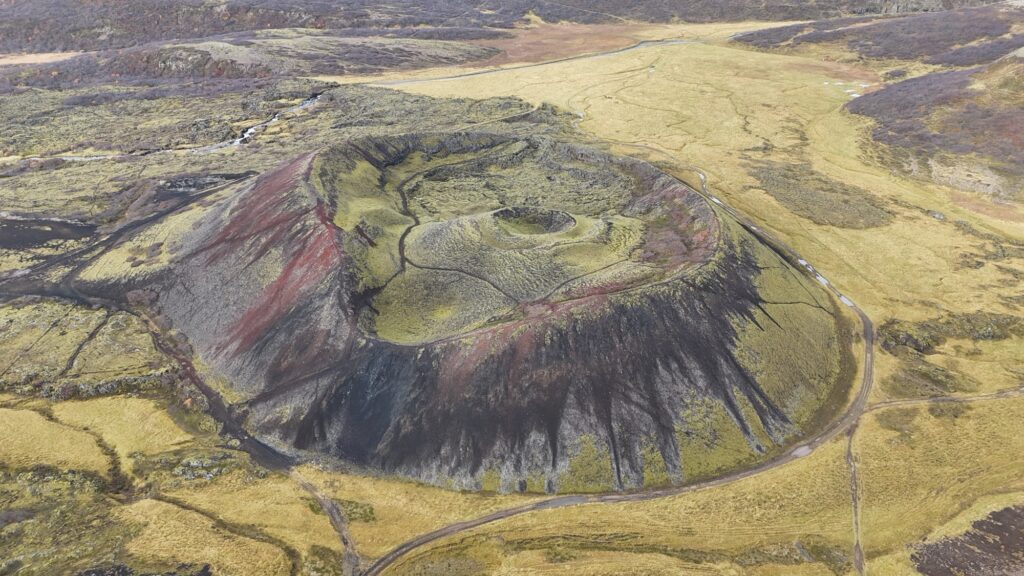 Vor der Abfahrt von der Ringstrasse nach Snæfellsnes haben wir aber erst einmal einen kurzen Stopp am Grábrók Krater eingelegt. Hier kann man über 780 Treppenstufen aber dennoch ziemlich bequem bis auf den Kraterrand steigen und von dort auch den Nachbarkrater Grábrókarfell sehen. Noch besser geht es aber wie immer mit der Drohne und wenn man ganz oben startet kommt man mit der Höhenbegrenzung von 120m dennoch ziemlich weit nach oben.