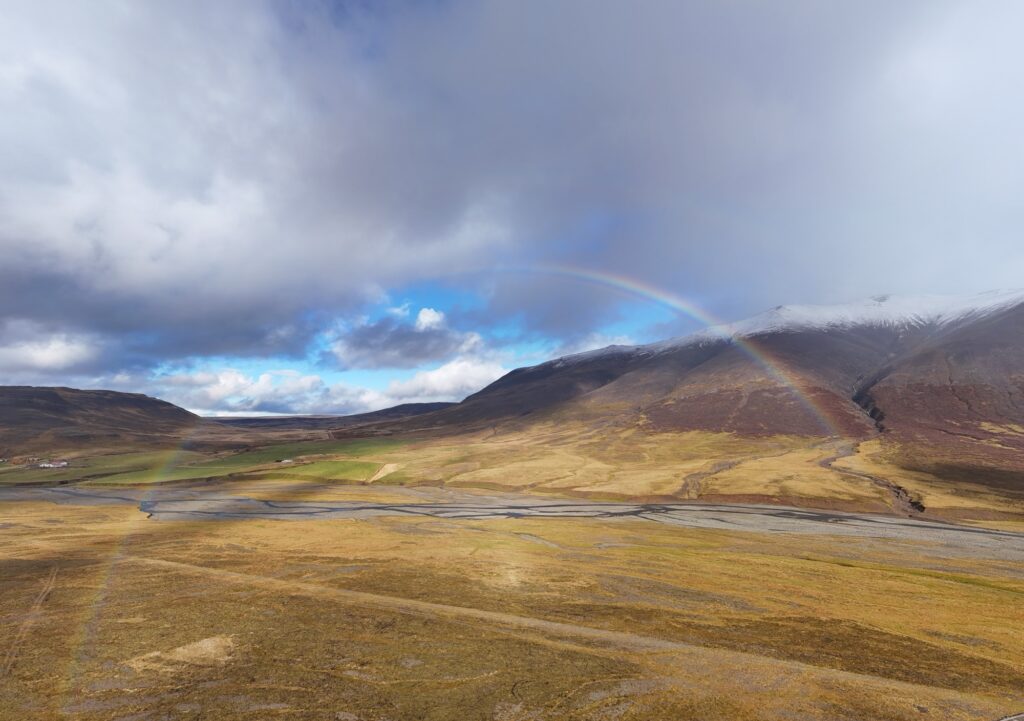 Von unserem Cottage in Hvammstangi sind wir noch bei ziemlich trübem Wetter und sogar mit etwas Schnee gestartet, aber gerade der hat im Tagesverlauf zu fantastischen Bildern auf den schneebedeckten Gipfeln beigetragen. Und Regen macht auch nichts aus, wenn es einen schönen Regenbogen gibt.