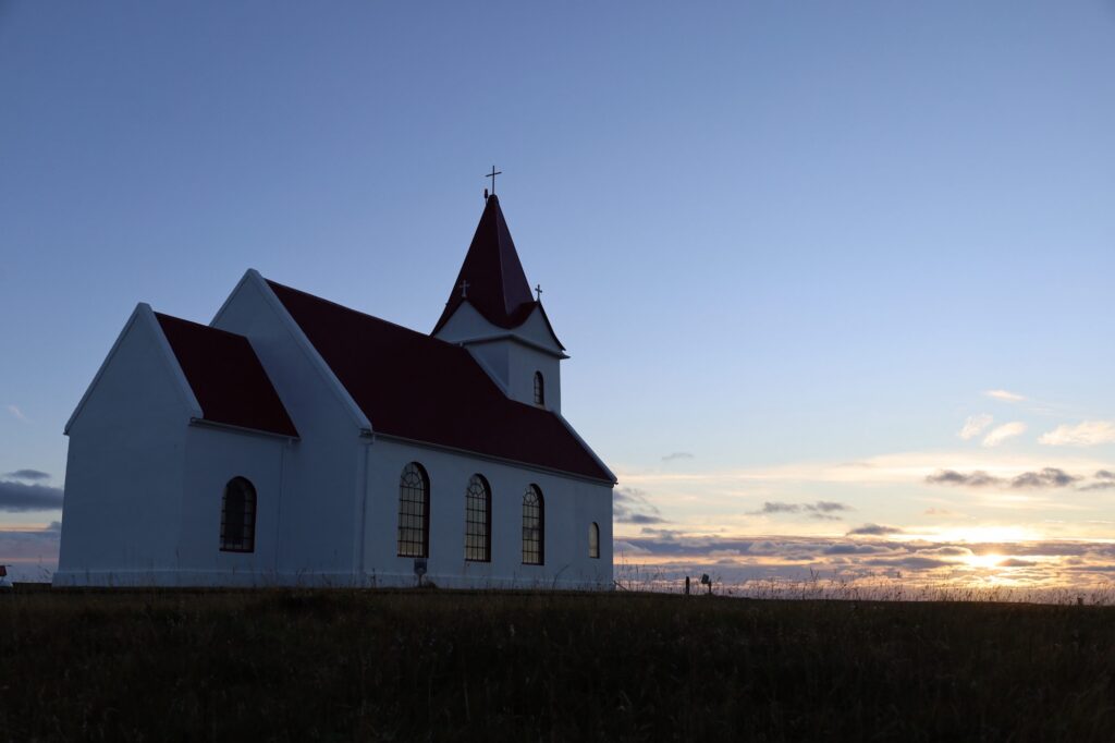 Zum Sonnenuntergang sind wir noch kurz zur Ingjaldshóll Kirche von 1903 gefahren, wo man auch einen herrlichen Blick zum 1148m hohen Snæfellsjökull hatte.