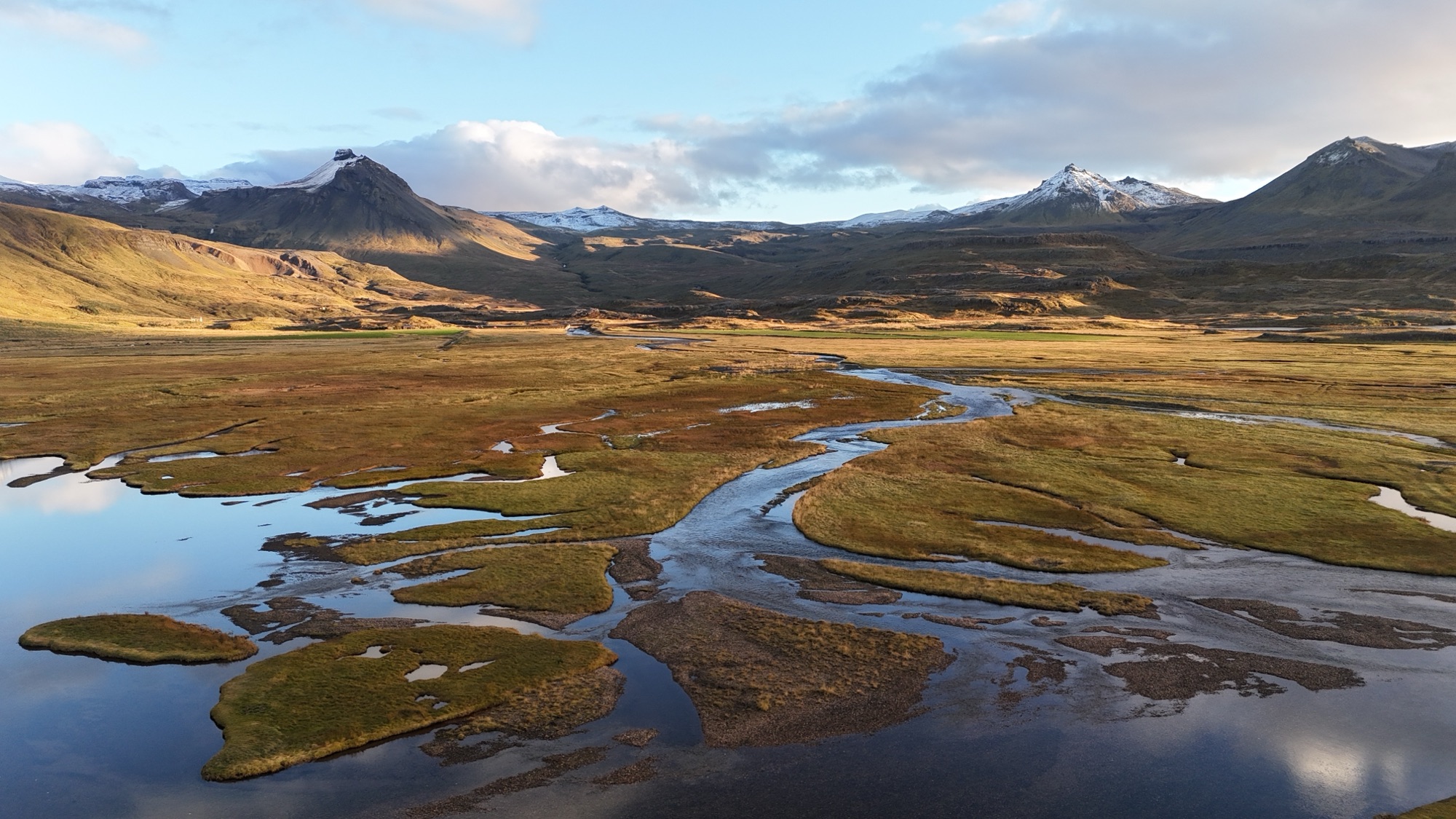 Die Halbinsel Snæfellsnes wird auch „Island in Miniatur“ genannt, denn hier gibt es Vulkane, Lavafelder, Wasserfälle, Gletscher und Strände wie im Rest von Island.