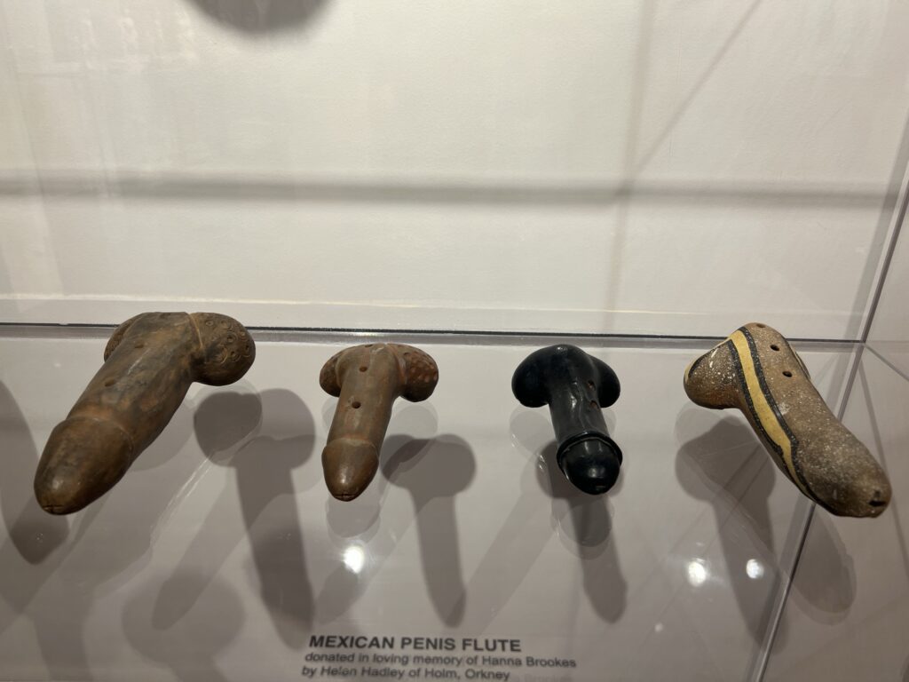Für den schon erwarteten Regen hatten wir zwei Indoor-Aktivitäten geplant. Als erstes sind wir ins weltweit einzigartige Phallus-Museum gegangen und haben uns dort die vielen verschiedenen Penis-Formen in der Tierwelt, wie unten dem Pottwal, und verschiedene skurille Kunstobjekte wie die mexikanischen Flöten unten angeschaut. Schon interessant, was der Gründer des Museums („irgendjemand musste es tun“) hier zusammengetragen hat.